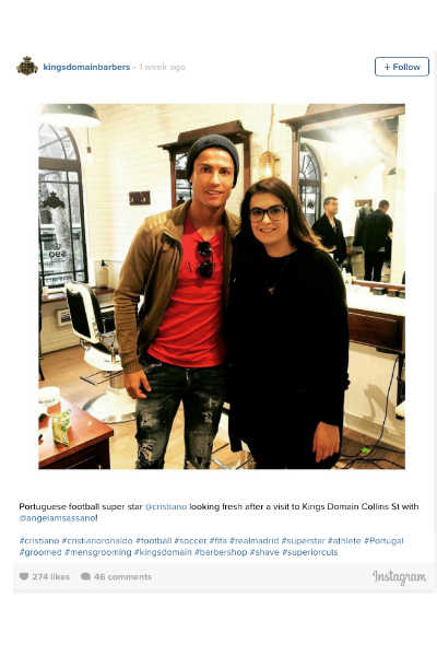 La primera cita de Cristiano en la peluquería australiana llamada, Kings Domain Barber Shop, fue el pasado 11 de julio, cuando sorprendió a todos los trabajadores del local al presentarse en su puerta.