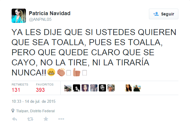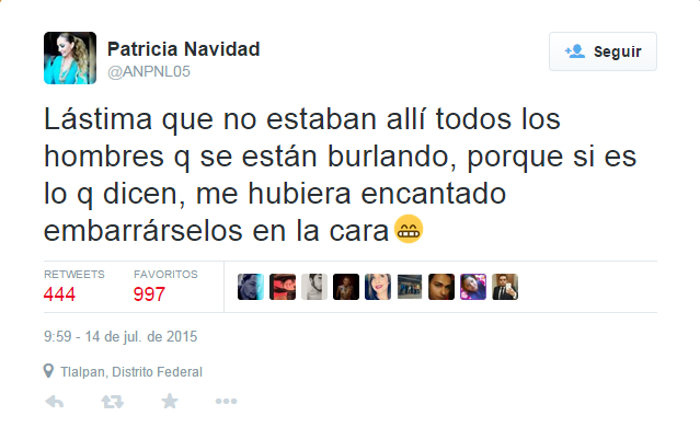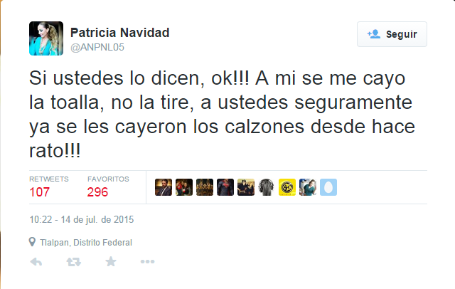 Luego de que sufriera el bochornoso accidente en vivo y cadena internacional, la guapa Paty Navidad respondió a través de su supuesta cuenta de Twitter a todos aquellos que hicieron burla.