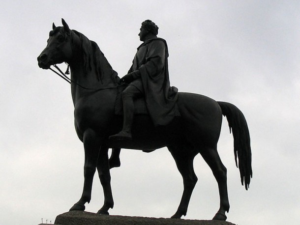 Si el caballo tiene una de las patas frontales en el aire, la persona murió de heridas recibidas en combate.