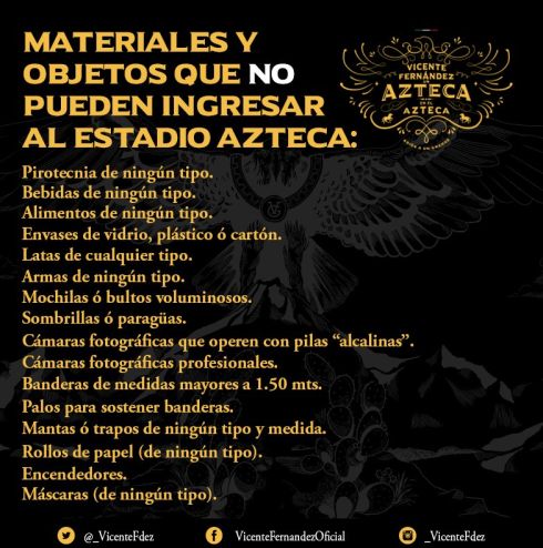 Este 16 de abril, el Estadio Azteca cantará todos los éxitos de nuestro querido Don Chente, y para que todo salga a la perfección, te pasamos estas recomendaciones para que disfrutes al máximo este magno evento.