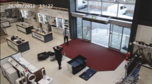 Las cámaras del establecimiento, ubicado en la ciudad inglesa de St Austell, grabaron cuando un hombre se agachó para revisar algo de una pantalla y en un abrir y cerrar de ojos se desató el alboroto.
