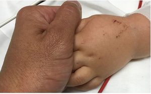 La madre del pequeño, Mishel Eder, compartió una foto similar en Instagram en la que se ve el brazo de su hijo todavía con heridas del accidente.