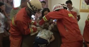 Niño chino se queda atrapado en un sillón y tienen que rescatarlo los bomberos