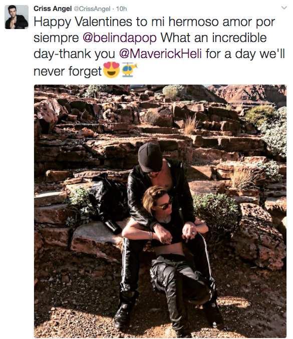 Belinda y Criss Angel festejaron el día del amor y la amistad de una manera muy peculiar: ¡a bordo de un helicóptero!