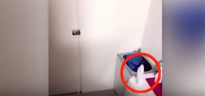 El oficial se metió al cuarto de lavado de su casa sospechando que podría pasar algo y fue así como se llevó un gran susto. De la nada, una botella de jabón líquido se deslizo por encima de una lavadora.