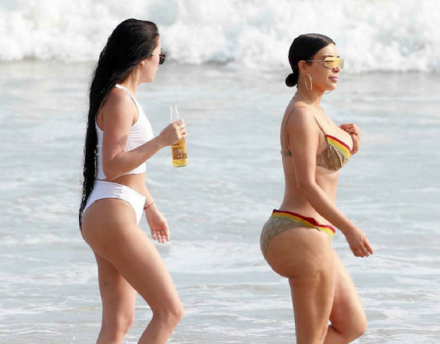 La socialité Kim Kardashian fue captada en playas mexicanas el fin de semana pasado acompañada de sus amigas, portaba un diminuto bikini el cual mostraba su figura a todo color.