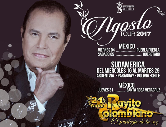 Rayito Colombiano sigue imparable, y continúa con su “TOUR LIVE 2017”, pero esta vez por Sudamérica, con gran éxito en cada una de sus presentaciones.