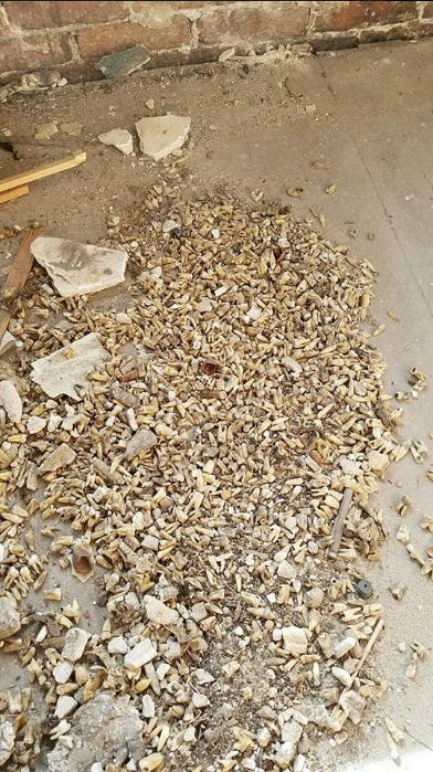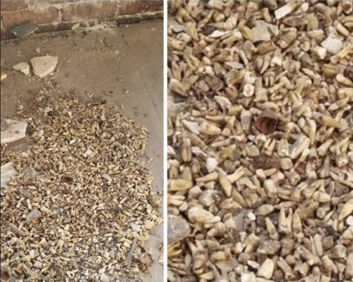 Mientras se encontraban realizando su labor, de un momento a otro los trabajadores vieron que dentro de una pared se encontraban lo que parecían ser miles de dientes. Luego de revisarlos confirmaron que eran de personas.