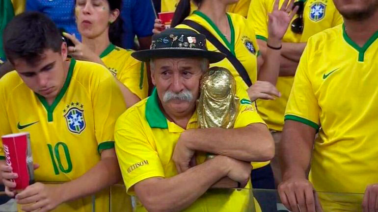 La imagen habla por sí sola mostrando el sentimiento de los brasileños desgarrados, y aferrados a una copa que la selección alemana les arrebato en un trágico e inolvidable marcador de 7-1.