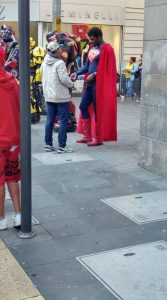 Su ubicación es en la calle de Madero, vestido de Superman decidió ganar un extra en el cual le va muy muy bien, ya que niños, jóvenes y adultos que lo reconocen hacen filas para tomarse la foto con el popular personaje de la televisión.