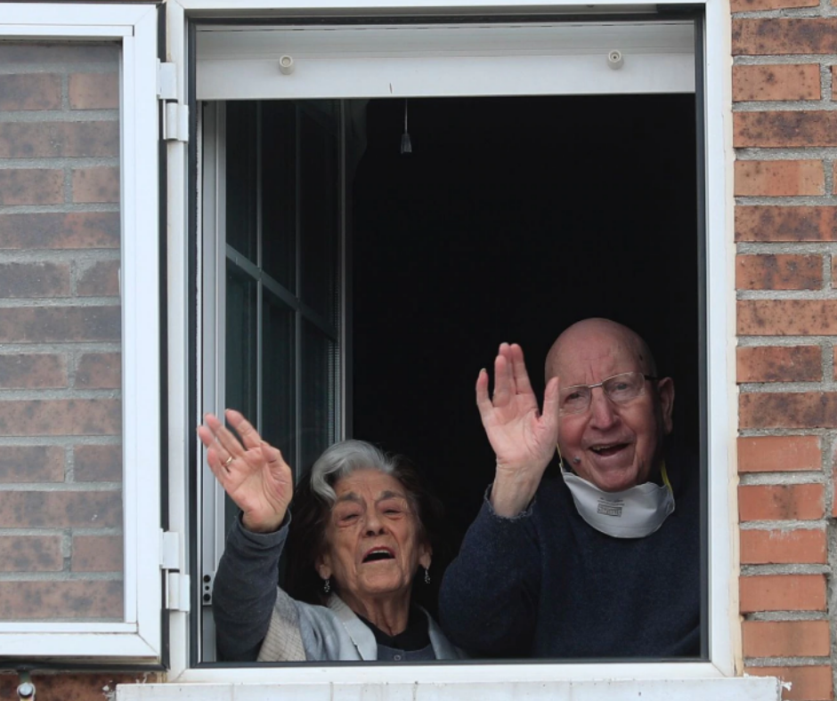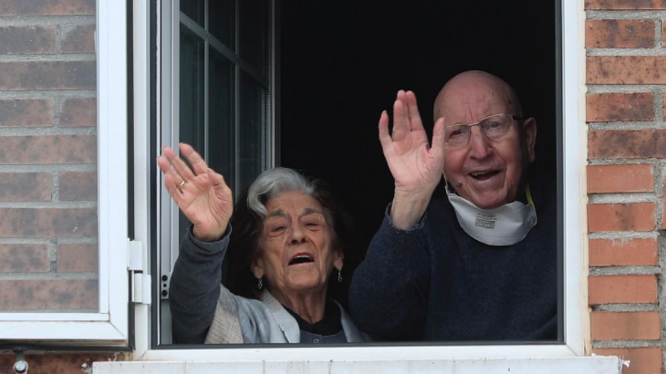 José y Guadalupe ya se encuentran en su casa, aunque confinados, pero este domingo salieron a la ventana para posar para un fotógrafo del diario español El País.