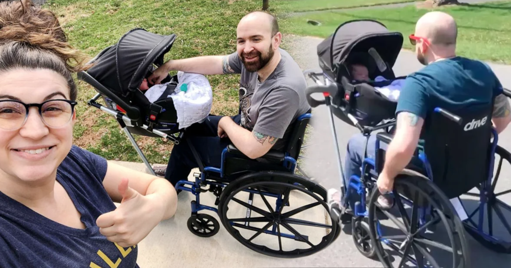 La historia es que Jeremy King no podía salir a pasear junto a su pequeño hijo, ya que en su condición por estar en silla de ruedas le impide empujar la carriola de su bebé como el quisiera, sin embargo unos estudiantes han modificado la silla e incluyeron un portabebés el cual le permite ahora si pasear a su bebé como tanto lo desea.