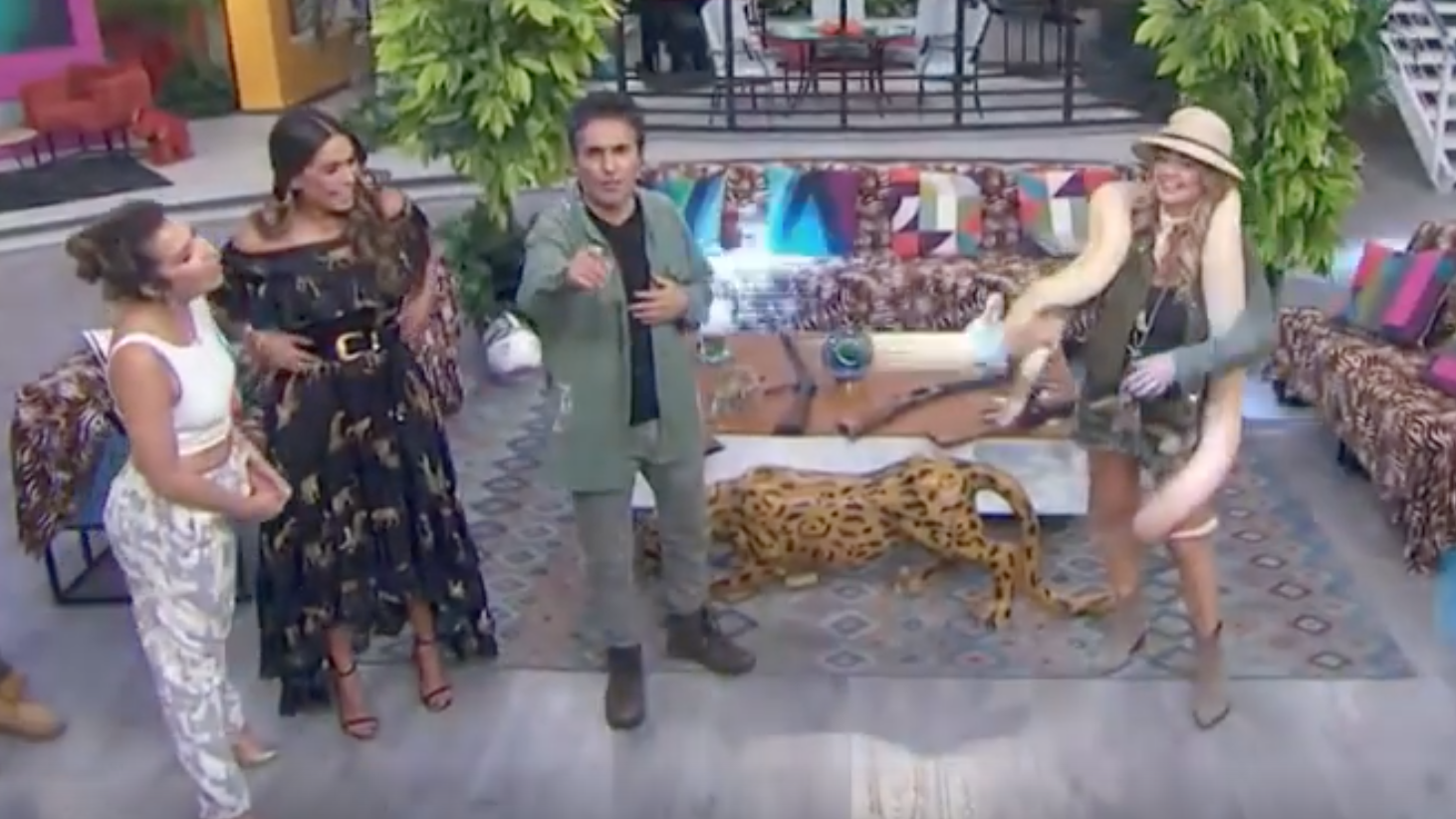 Fue en la sección del programa llamada Safari salvaje, cuando la presentadora inicio los primeros minutos con un enorme pitón sobre su cuello mostrando en todo momento confianza en el animal y disfrutando el momento.
