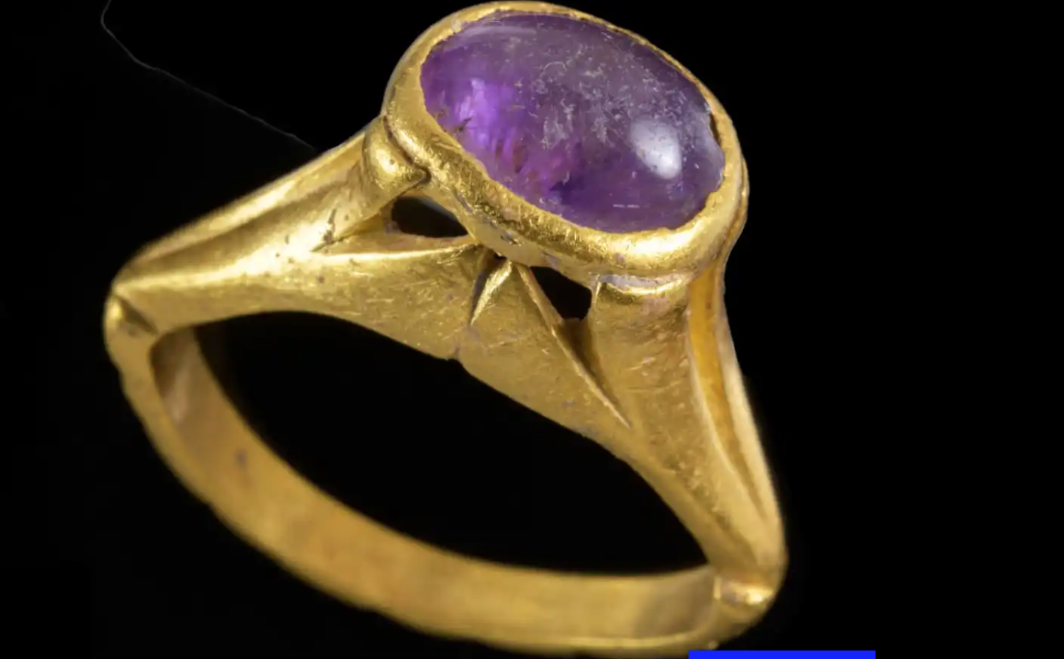 De acuerdo con la Autoridad de Antigüedades de Israel declaró que encontraron este anillo de amatista de oro y morado dentro de la mayor bodega conocida de la época bizantina. La encontraron 150 metros de los restos de un almacén que contenía ánforas y más utensilios para la vida cotidiana.