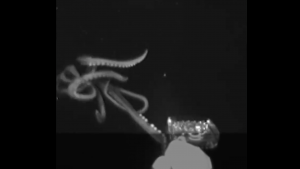 Calamares gigantes protagonistas de muchas películas y leyendas de los mares que siguen siendo todo un misterio para los científicos en las profundidades del mar que por primera vez ha sido grabado por Science Direct gracias al uso de luces rojas y un falso sebo.
