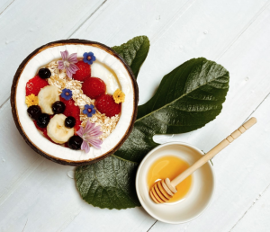 • Coco, avena y fruta fresca para decorar