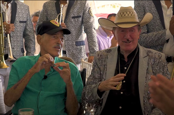Andrés García con un bastón en mano y fumando puro es como disfrutó del gran encuentro que fue toda una sorpresa para él.