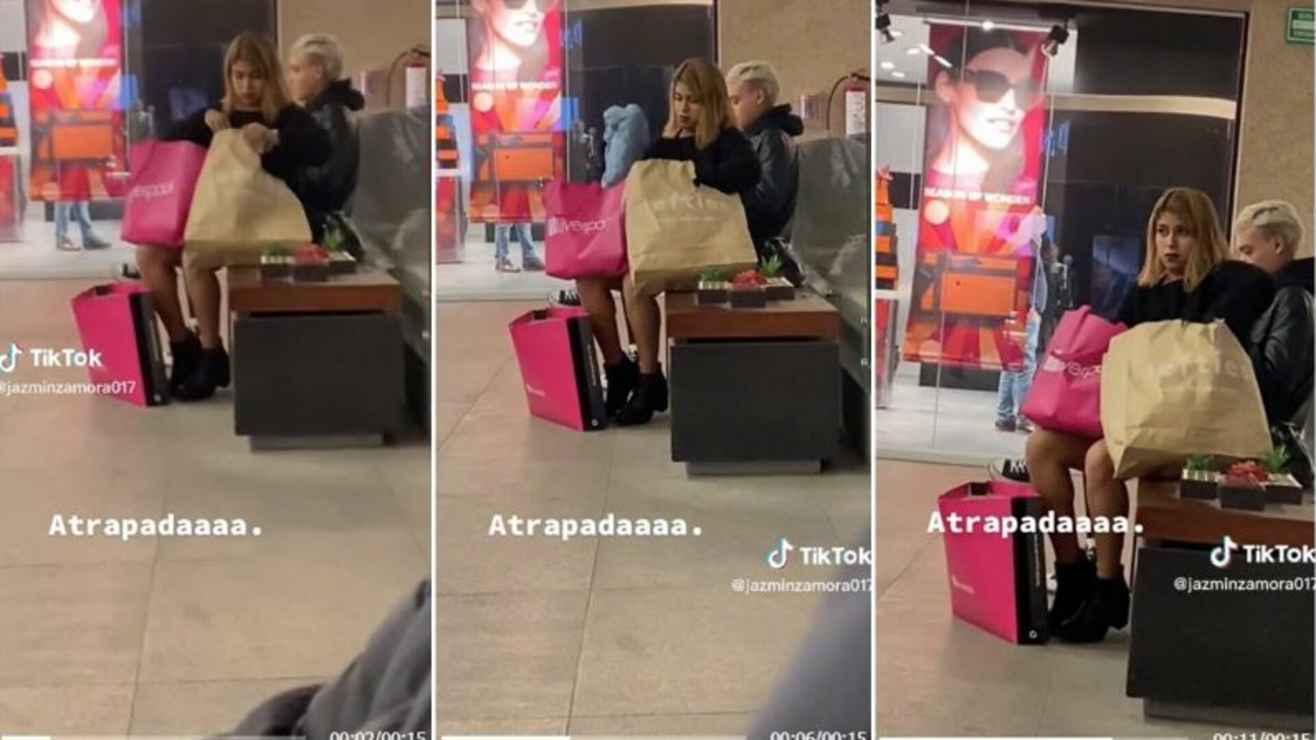 En el clip es posible ver cómo la joven comienza a sacar ropa de una bolsa de Lefties y la pasa a una de Liverpool.