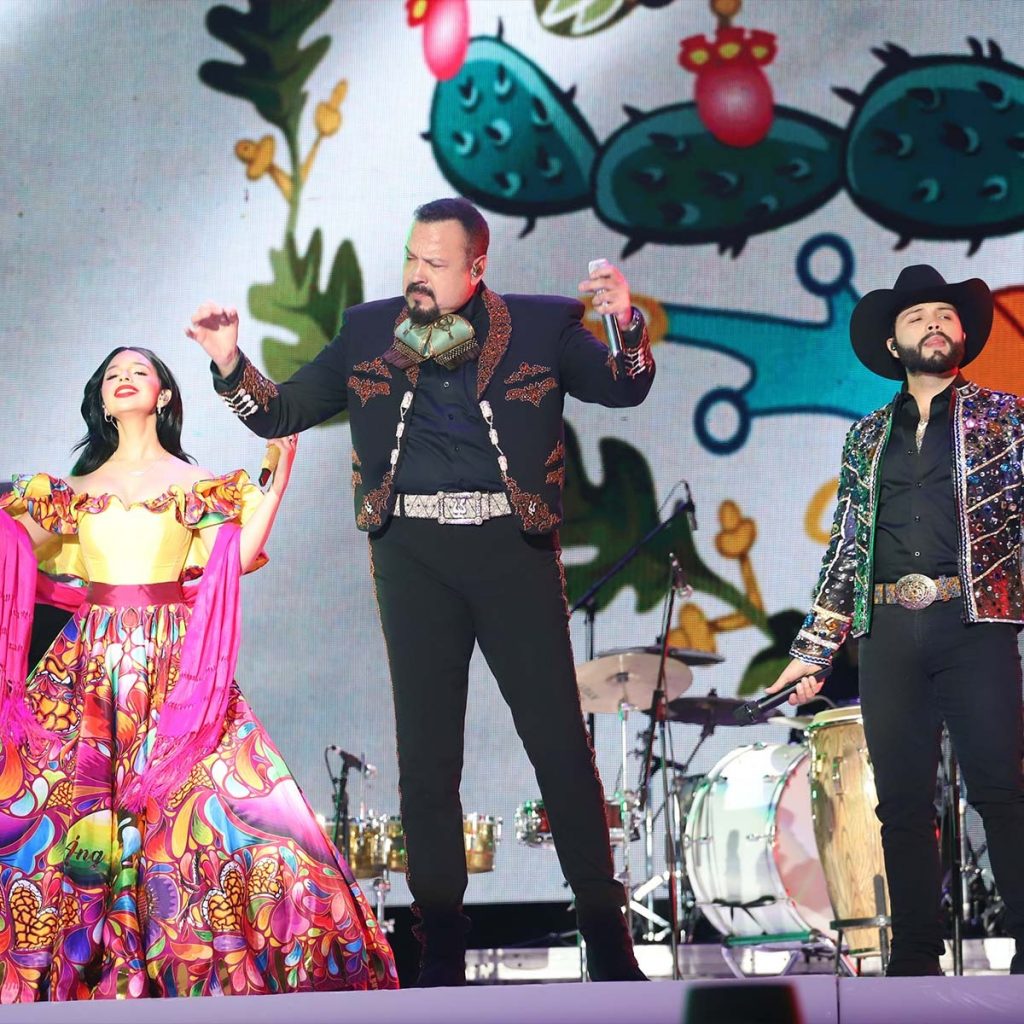 Pepe Aguilar acompañado de sus hijos, Leonardo y Ángela nos interpretaron: «Popurrí de Joan Sebastian», «Dime cómo quieres», «Que agonía», «No me hablen de amor», «Prometiste», «Ni contigo, Ni sin ti» y «México lindo y querido «.