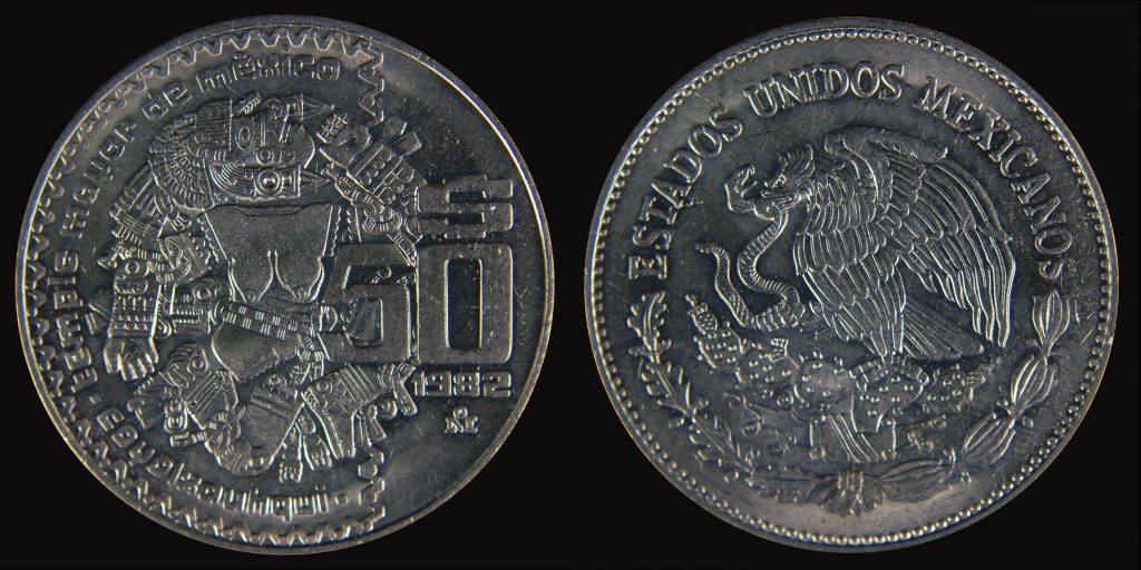 Aunque se fabricaron poco más de 170 millones de piezas, de la moneda en 1982, existen cuatro piezas fabricadas en 1984 con acabado espejo que forman parte de la acuñación de la moneda de 50 pesos con la imagen de la Coyolxauhqui y que hoy en día son difíciles de encontrar.