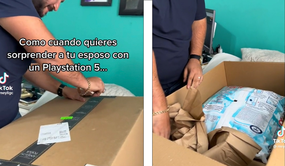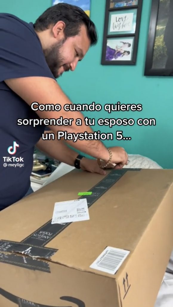 «Como cuando quieres sorprender a tu esposo con una consola de videojuegos. Él no tenía ni idea, miren su cara de felicidad pero la sorprendida fuiste tú y solo te mandaron un jabón de 15 mil pesos», escribió en su video que suma cerca de 2 millones de reproducciones.