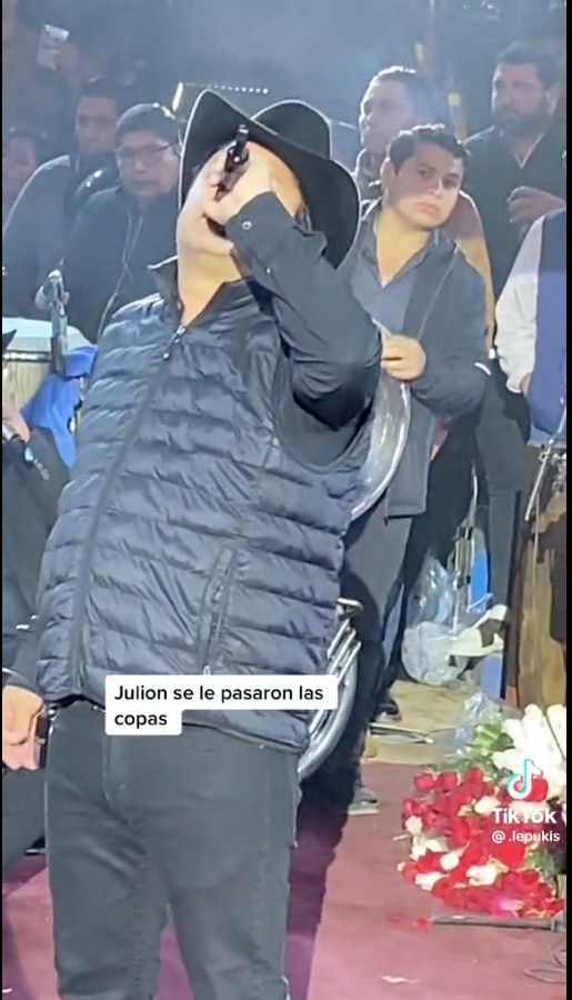 Al cantante mexicano se le hizo buena idea quitarse el frío con un par de copitas durante su presentación en Tijuana.