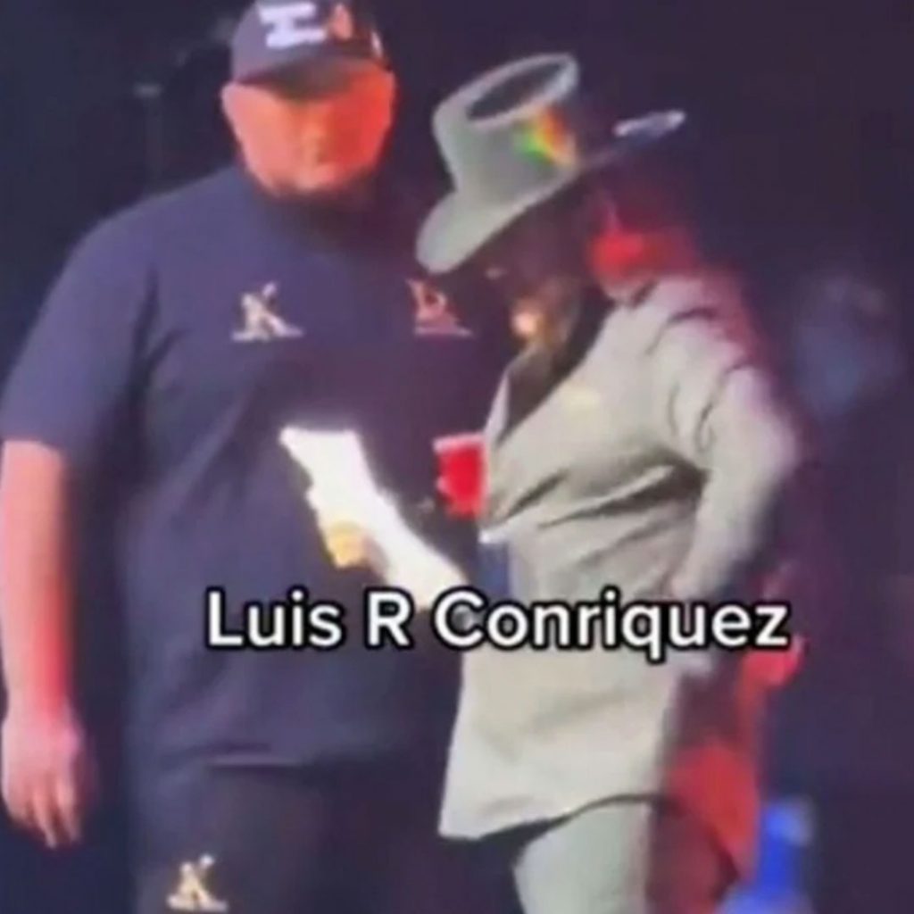 En un video que se hizo viral quedó documentado el momento en que Luis R. Conriquez recibió la carta de una mano que salió de entre la multitud, la cual recibe con gusto pero parece cambiar de semblanza cuando comienza a leerla.