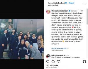 «Mi Gus, solo espero que sepas cuánto te quiero, cuánto creí en ti y cuánto te voy a extrañar. Lo que sí estoy segura es que nunca sabrás con cuántas ganas me quedo de habértelo podido decir una vez más. Descansa, querido amigo», escribió.