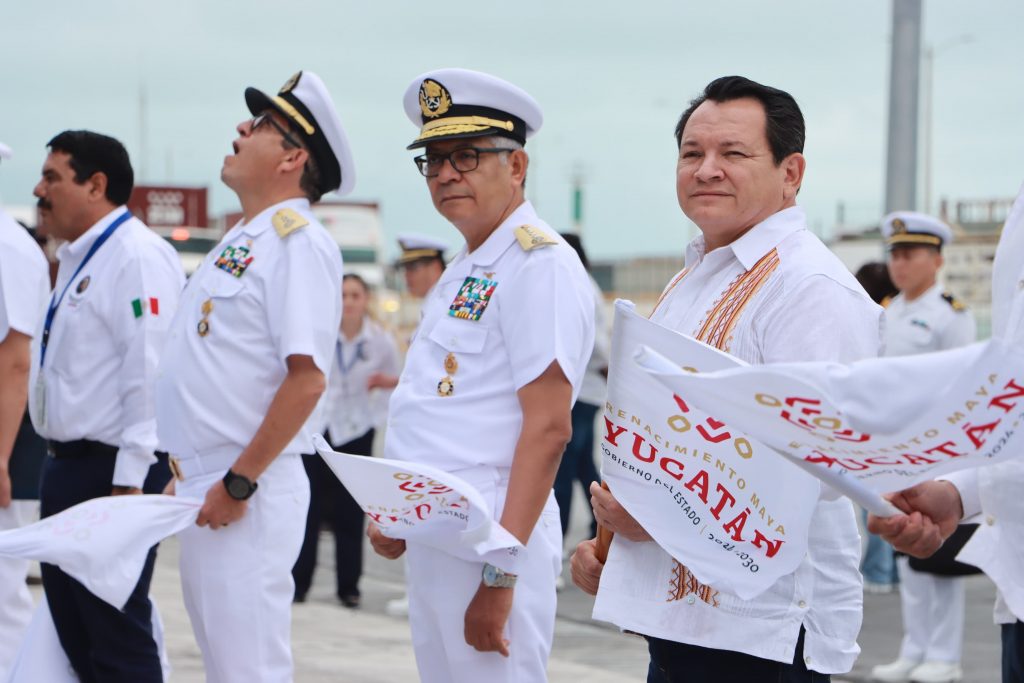 · El titular de la Secretaría de la Marina (Semar), Raymundo Morales Ángeles y el gobernador Joaquín Díaz Mena, encabezaron el acto que posiciona a Yucatán como un eje central en la red global de comercio marítimo.