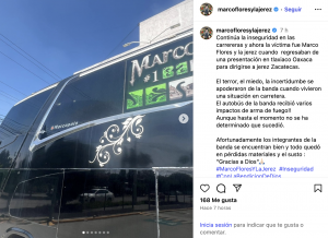 En entrevista Marco lamentó la violencia en las carreteras y detalló que su autobús recibió seis balazos mientras regresaban de Tlaxiaco, Oaxaca. “Íbamos puros músicos, gente de paz”, dijo.