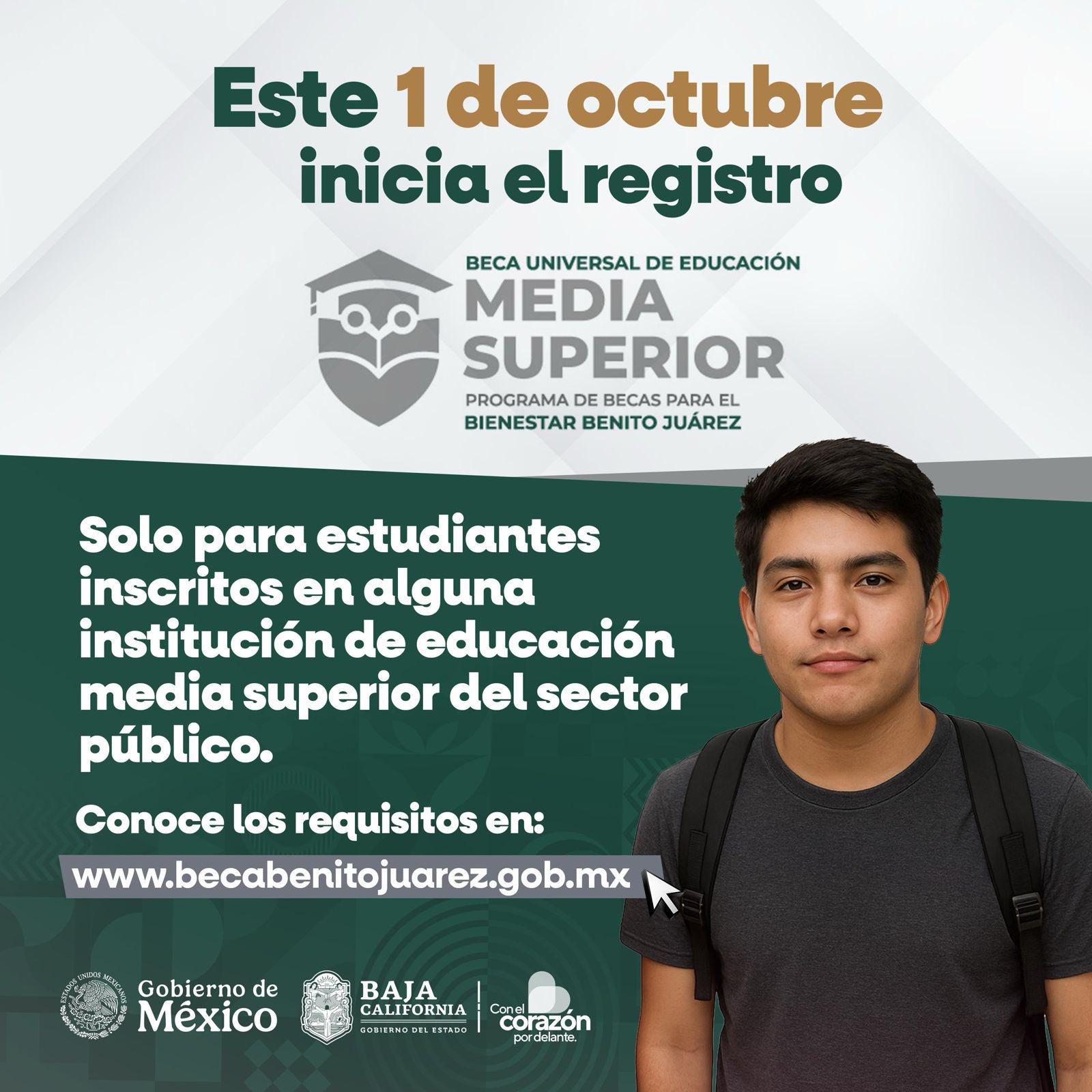 Durante este tiempo, los alumnos de nuevos ingreso o aquellos que aún no tienen acceso a la Beca Universa Benito Juárez, podrán registrarse en la página web del programa: becabenittojuarez.gob.mx. Este trámite sólo se podrá llevar a cabo en línea.