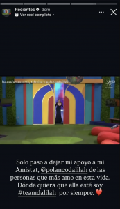 “Sólo paso a dejar mi apoyo a mi amistad, Dalilah Polanco. De las personas que más amo en esta vida. Donde quiera que ella esté, soy #teamdalilah por siempre”, escribió.