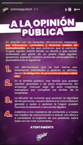 Después de esas declaraciones se generaron cientos de comentarios en las redes sociales, lo que llevó a la familia Aguilar a publicar un comunicado oficial en su página de Instagram.