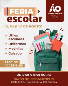 La alcaldía informó que la feria será del 15 al 17 de agosto, de 10:00 a 18:00, en el Salón de Usos Múltiples, Calle 10 S/N, esquina Canario, Col. Tolteca.