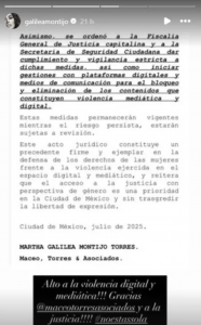 Al igual dieron a conocer que la decisión fue tomada por el juez, tras revisar una denuncia interpuesta por la presentadora por hechos que fueron calificados como “violencia sistemática con tintes psicológicos, digitales y mediáticos”.
