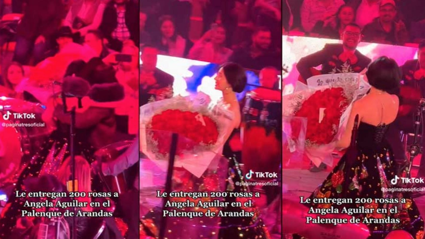 Ángela Aguilar recibe enorme ramo de rosas