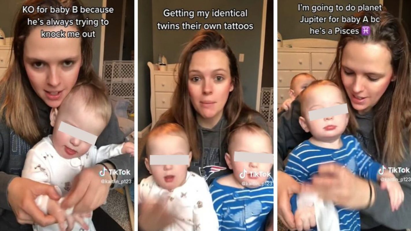 Mamá tatúa a sus bebés gemelos para identificarlos